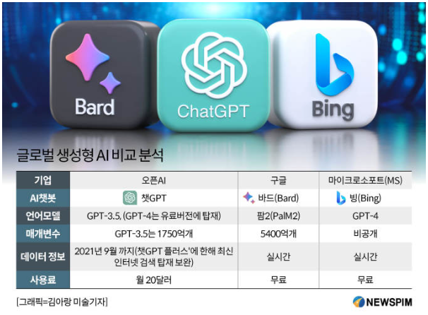 Google이 검색에 AI를 도입 MS의 Bing보다 한 발 늦은 감 구글은 향후 생성형 검색 경험(Search Generative Experience/SGE) + Gemini 합쳐서 만들 예정 Bard 코드 작성 기능 추가 및 시각적 요소 업그레이드 예정 자연어 생성 문제에 초점을 맞춘 모델로, 문장 또는 문서 생성 등의 작업에 주로 사용 BERT와 비슷한 Transformer 기반 모델 이미지 인식 앱인 구글 렌즈와 바드를 결합할 예정 특정 단어나 문구의 의미를 이해하는데 초점 PaLM 100개 이상의 언어를 학습해 언어의 미묘한 텍스트를 이해한다. 추론 능력과 코드 작성 능력도 강화 Gemini GPT-4에 맞설 차세대 대규모 LLM PaLM 2 보다 더 개선된 모델 (개발 : 딥 마인드) Chat..